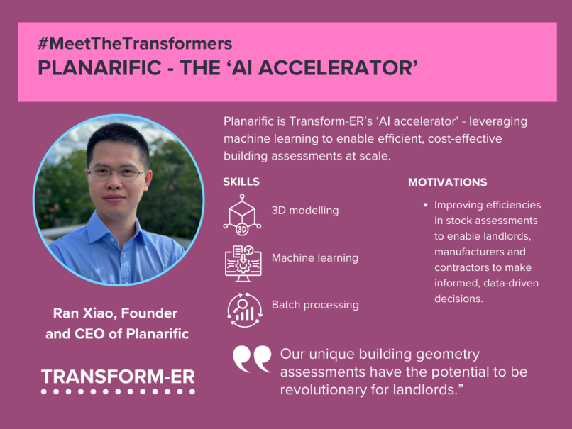 13 partners, 18 months, one mission: our consortium-led Transform-ER project aims to enable one million home upgrades every year by 2030. This blog series tells the stories of our tactical team of partners and the retrofit barriers they are addressing – so let us introduce Planarific, our AI accelerators.