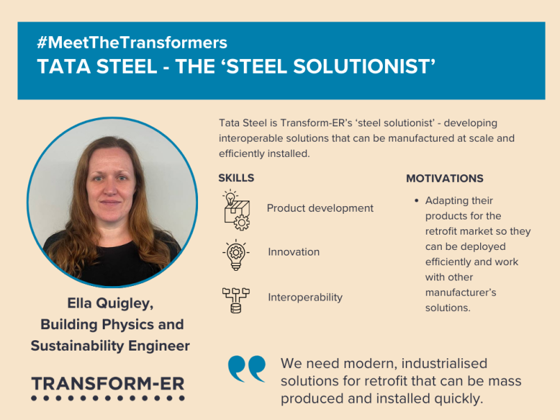 In this latest instalment, we catch up with Ella Quigley who has led Tata Steel’s contribution to the Transform-ER project, to discuss moving into the retrofit market, why interoperability is key to scaling retrofit, and the importance of collaboration and integrated delivery teams to ensure successful project delivery.