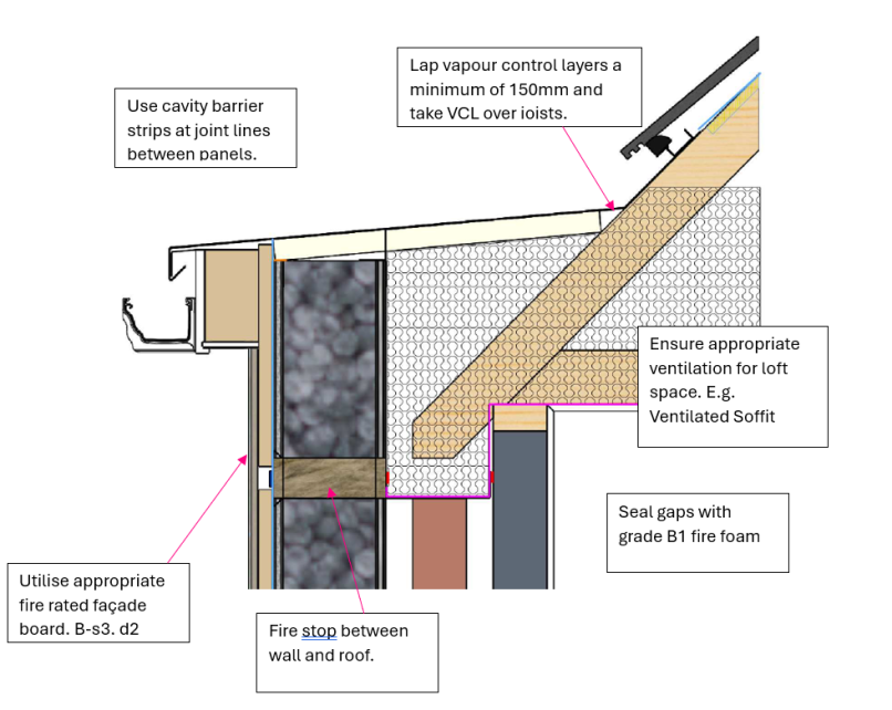 The following are critical high-level rules for an eaves detail that should be complied with as part of a Transform-ER retrofit programme: