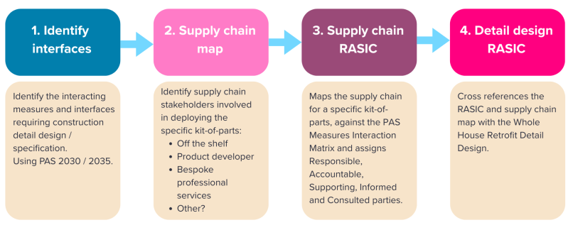 - Once design e.g. RIBA Stage 3 or 4, roles and responsibilities are mapped within the retrofit project team and supply chain – specifically for the interfaces of the retrofit.