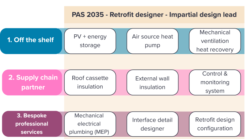 - The PAS 2035 Retrofit Designer should act as impartial design lead, pulling together the design of the retrofit package, from the down selected kit-of-parts and supply chain partner organisations.