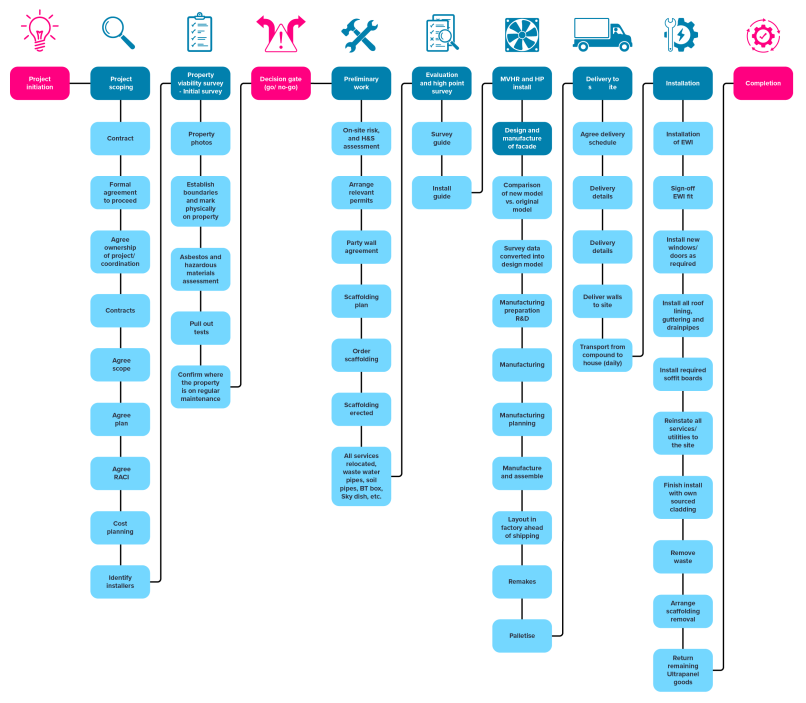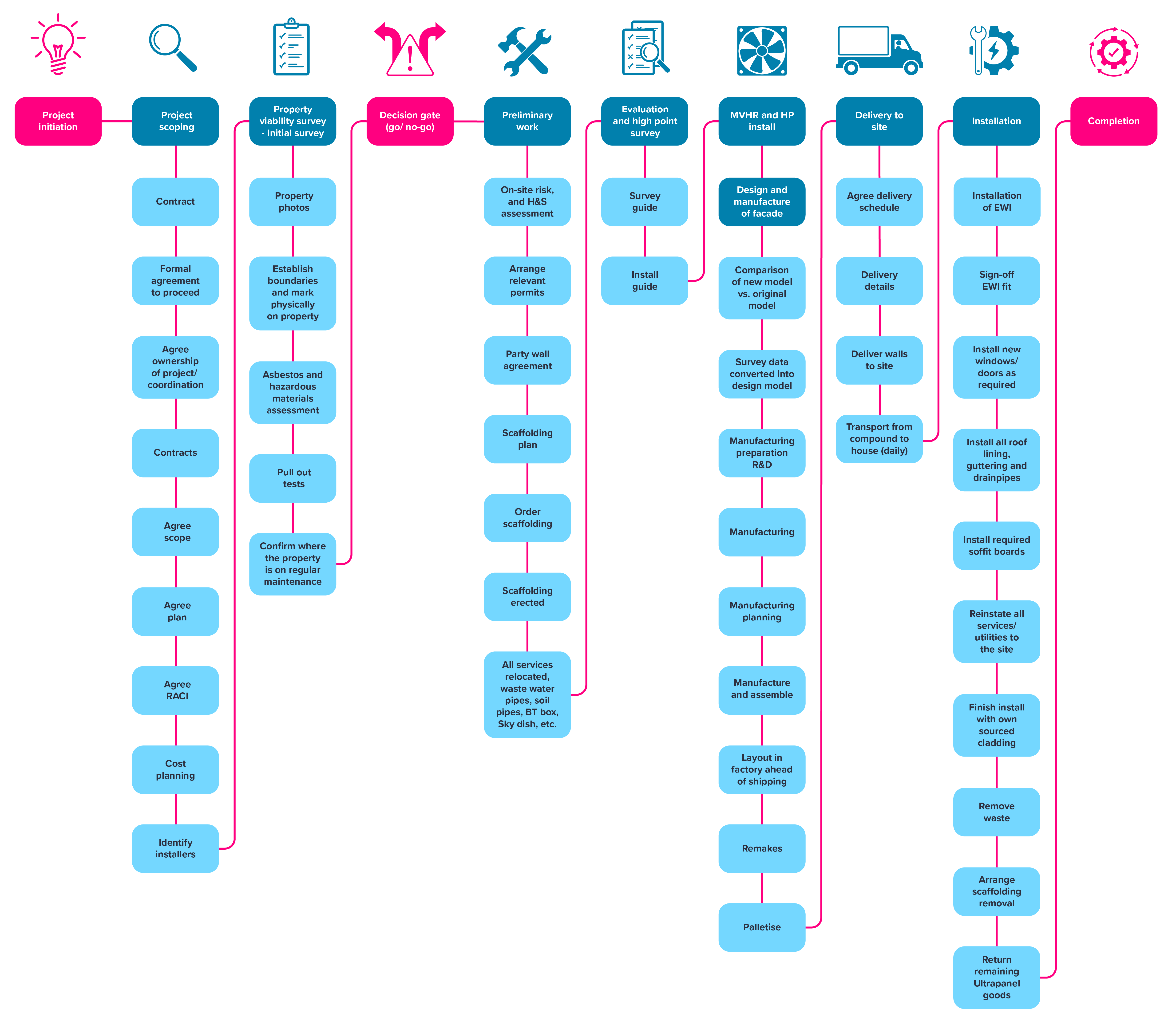 - Digital retrofit build schedule – app or digital dashboard, with access to all stakeholders including the resident.