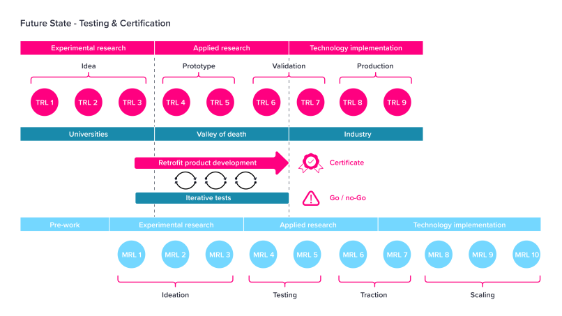- The ability to conduct rapid iteration in testing, adopting a ‘fail fast’ approach. This would enable quicker lessons-learned, expediate product development, and quicker progress through TRL/MRL levels towards volume production.